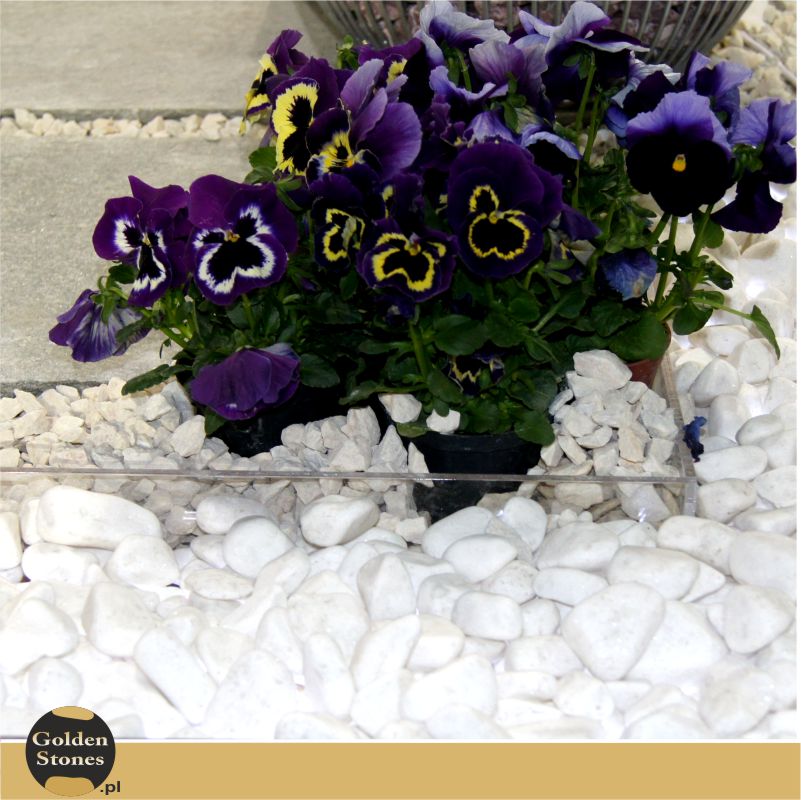 Otoczak grecki śnieżnobiały Thassos – najbielszy marmur na świecie pochodzący z Grecji. Śnieżna biel jest bardzo efektowna i elegancka, dobrze komponuje się z zielenią w ogrodzie. Charakteryzuje się drobinkami kryształków pięknie mieniących się w słońcu.